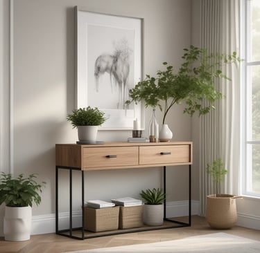 Console tables are the unsung heroes of home decor. Often overlooked, they serve a multi-functional purpose in both living rooms and entryways. Not only do they provide additional surface space for decorative items like photos and plants, but they can also act as a practical storage solution. Think of a console table as an opportunity to enhance your home’s entryway or living space—setting the tone for your interior style before guests even step inside.
